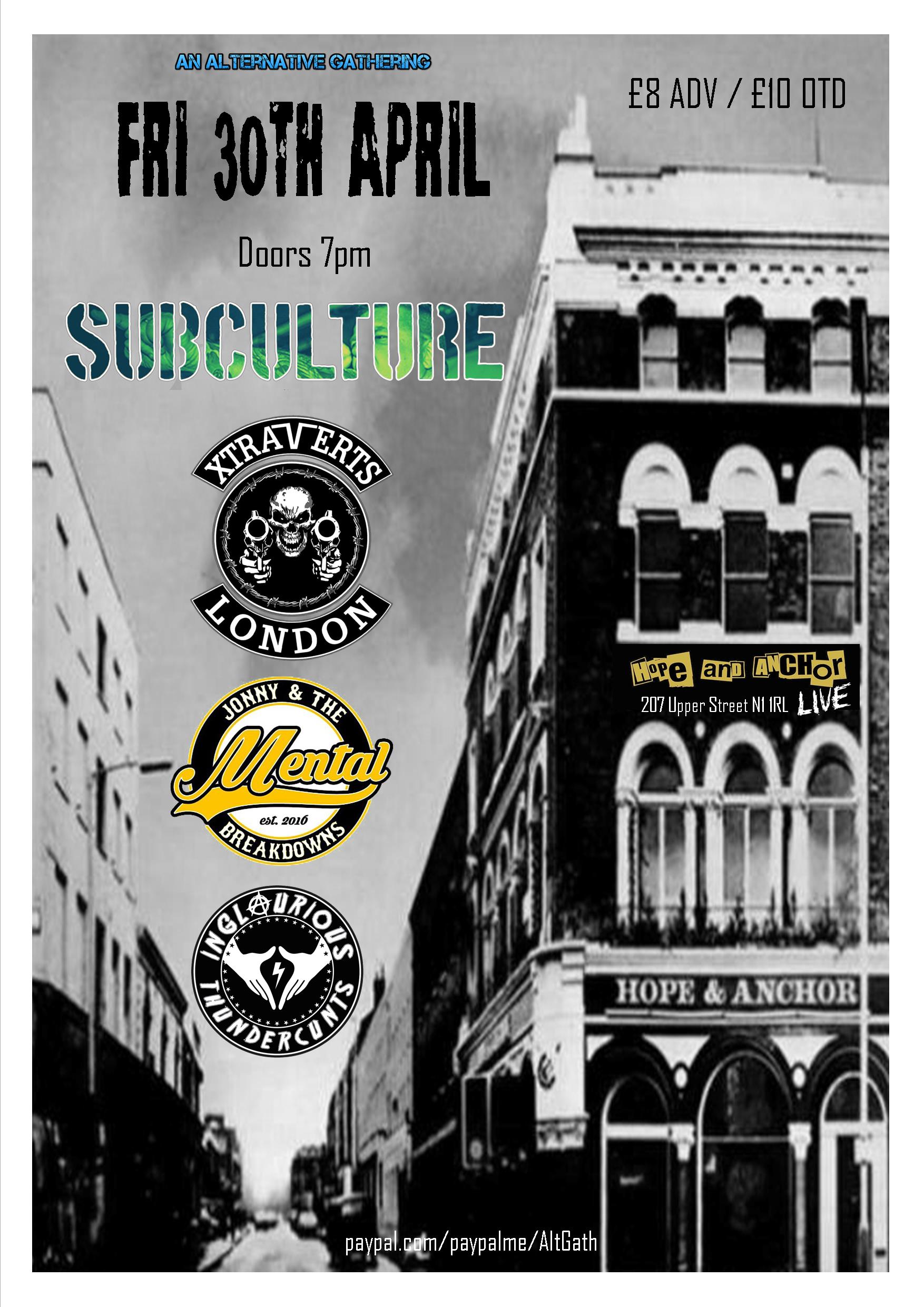 Subculture, Xtraverts, Jonny & The Mental Breakdowns & Inglourious Thundercunts